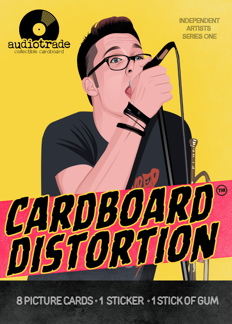 The Cardboard Distortion trading card packs include a card for each current member of a featured band. Every pack includes eight random cards, a sticker, and a stick of gum. The goal is to give indie musicians a fun way to connect with their fans and help cross-promote other musicians in the scene.